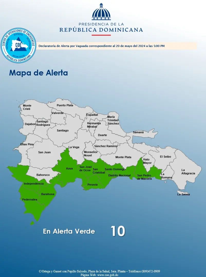 COE coloca 10 provincias en alerta verde debido a una vaguada