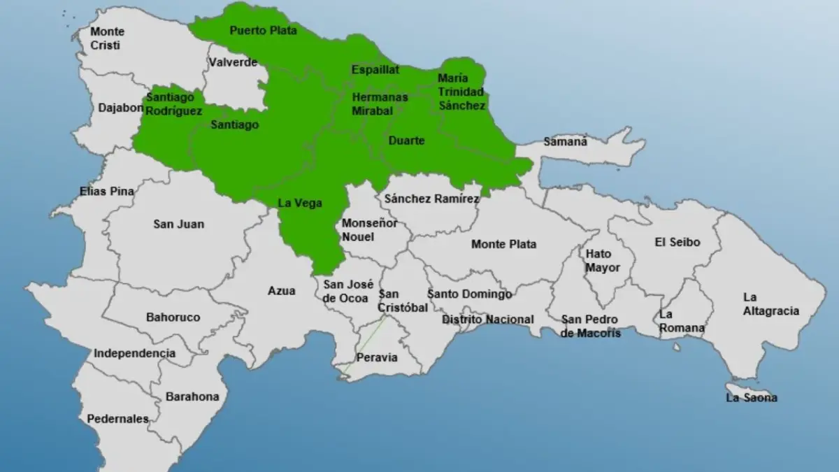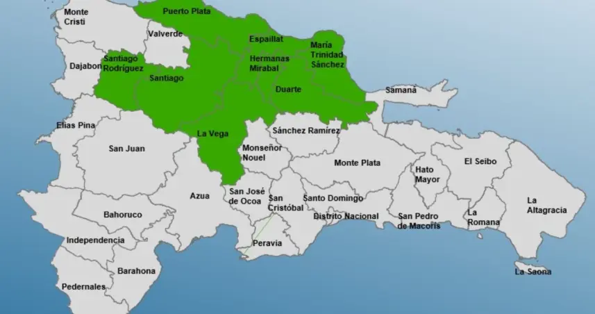 Las provincias en alerta son: La Vega, Santiago, Santiago Rodríguez, Duarte, Hermanas Mirabal, Puerto Plata, Espaillat y María Trinidad Sánchez.