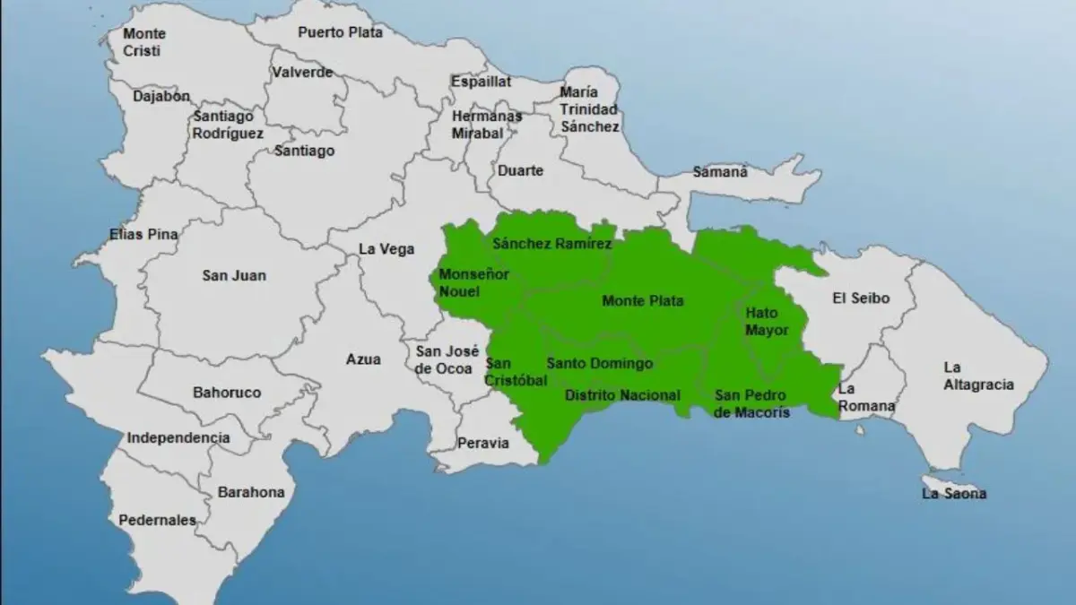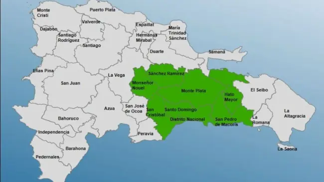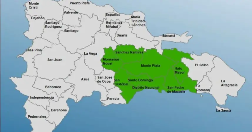 Entre las localidades que se encuentran en alerta están, San Cristóbal, Hato Mayor, San Pedro de Macorís, Monseñor Nouel, Monte Plata, Sánchez Ramírez y El Gran Santo Domingo.
