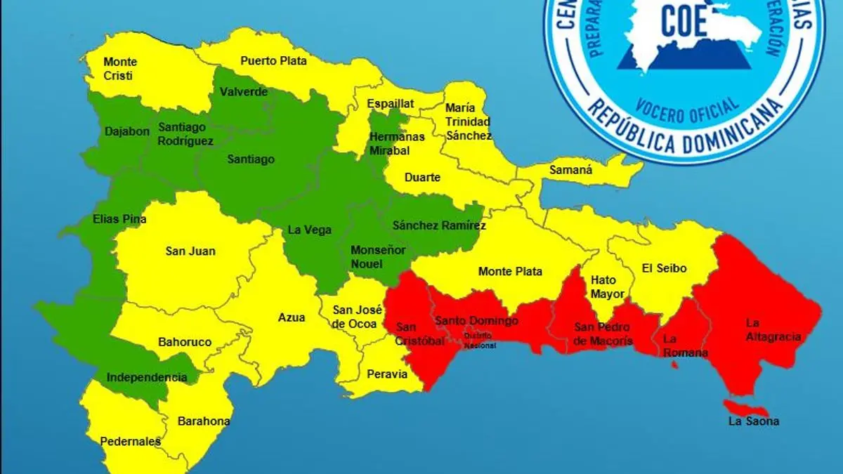 5 provincias en alerta roja, 16 en verde y 10 en amarillo.