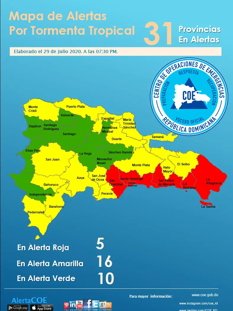 En la última actualización Centro de Operaciones de Emergencia COE, todo el país se encuentra bajo alerta, ante el inminente paso del fenómeno por territorio nacional.