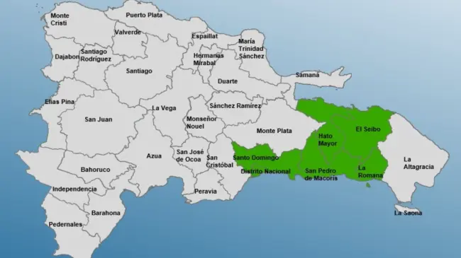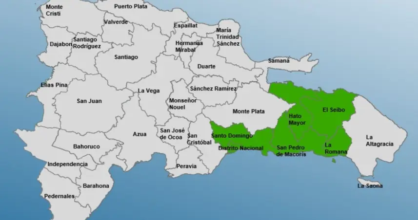 Las provincias en alerta verde son Santo Domingo, San Pedro de Macorís, El Seibo, Distrito Nacional, La Romana y Hato Mayor.