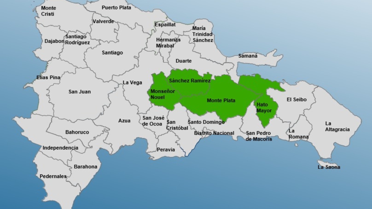 Santo Domingo.- La Dirección del Centro de Operaciones de Emergencias (COE), informó la colocación de alerta verde para las siguientes provincias: Monseñor Nouel, Sánchez Ramírez, Monte Plata y Hato Mayor, debido a que el viento del este y los efectos locales generarán algunos incrementos nubosos con aguaceros aislados y tronadas.