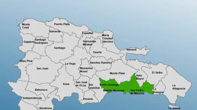 El COE declaró alerta verde para el Distrito Nacional, Santo Domingo y San Pedro de Macorís, debido a una vaguada que provocará aguaceros, tronadas y ráfagas de viento.