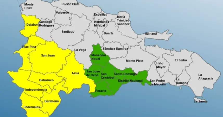 Las provincias en alerta amarilla son: Pedernales, Barahona, Elias Piña, Independencia, San Juan, Azua, Dajabón y Bahoruco
