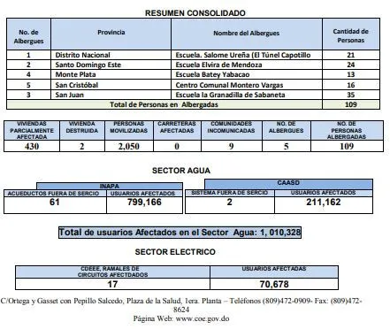De acuerdo al informe, 17 circuitos energégicos están afectados, impactando a 70,678 usuarios. Asimismo, unos 61 acueductos están afectados.