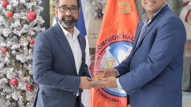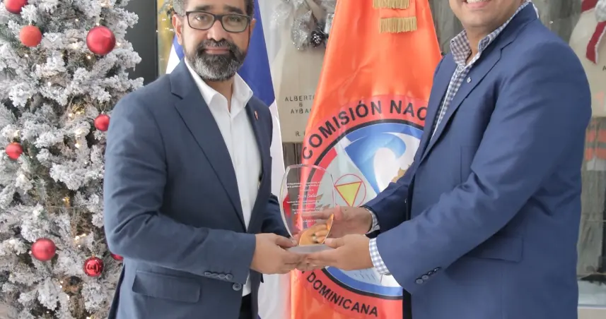 Durante el encuentro, el también director ejecutivo de la Defensa Civil recibió una placa de reconocimiento entregada por el enlace, Rafael Duarte, del Departamento Aeroportuario, donde reconocen su dedicación en el impulso de las políticas de gestión de riesgos en el país.