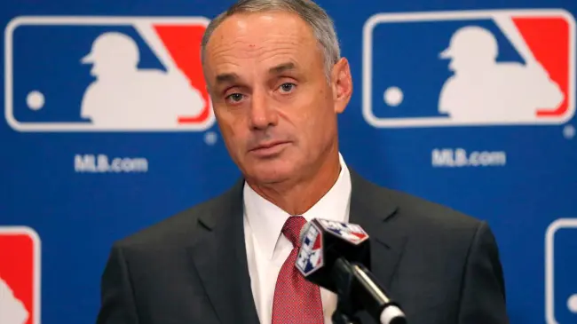 En conversaciones con el presidente de la Asociación de Jugadores de MLB, Tony Clark, Manfred ha planteado la idea de programar una temporada tan delgada como unos 50 juegos, alegando que sus dueños no pueden permitirse jugar más partidos sin fanáticos pagando mientras les dan a los jugadores su ingreso diario completo.