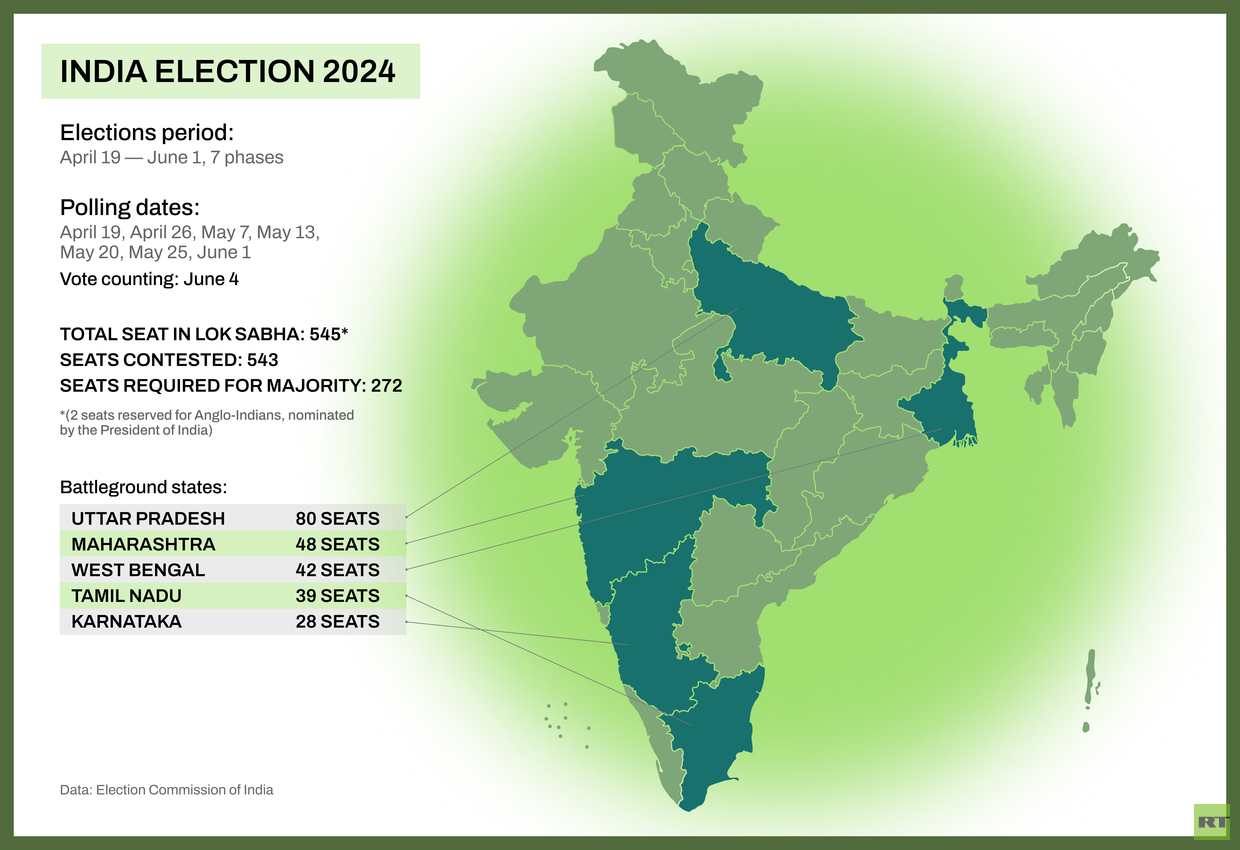 Alrededor de 968 millones de personas –más que la población de la UE, Estados Unidos y Rusia juntas– tienen derecho a votar. emitir votos para determinar quién ocupará un asiento en la cámara baja del parlamento de la India, el Lok Sabha, y quién se convertirá en el próximo primer ministro de la India.
