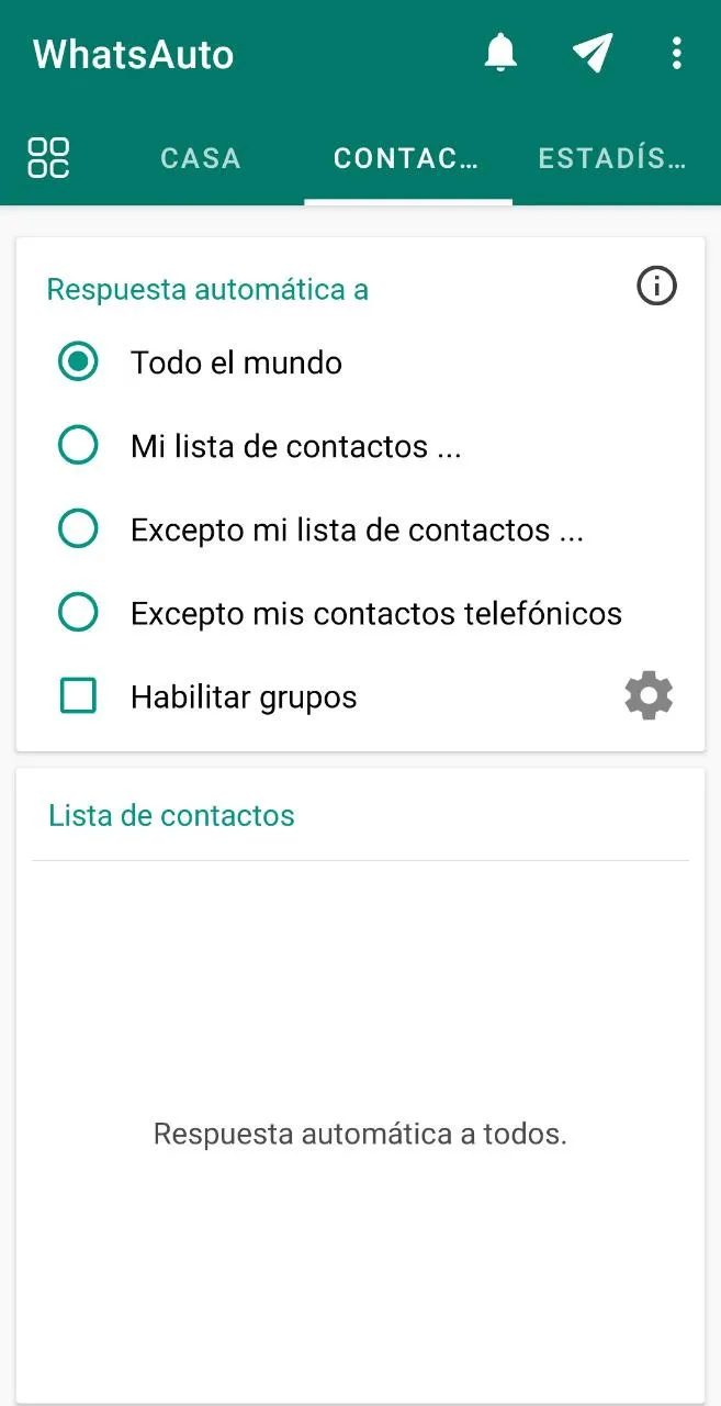 Todo el mundo: Enviará el mensaje de respuesta a todas las personas que escriban a WhatsApp, estén en su lista de contactos o no.
