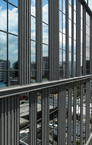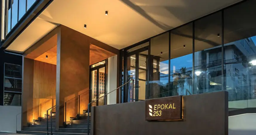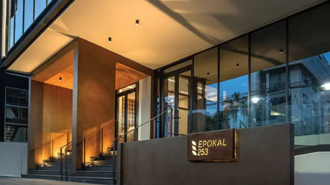 La fachada del Epokal 253 fue diseñada para reducir la carga de aire acondicionado en un 30%, compuesto en un 60% de muros con tratamiento EIFS (Exterior Insulation Finish Systems) y en un 40% de ventanas de doble vidrio de alta calidad, lo que mejora el aislamiento térmico. Esta característica permite una disminución en la demanda de cortinas o protección solar adicional, gracias al control de temperatura y a la protección contra la radiación solar directa.