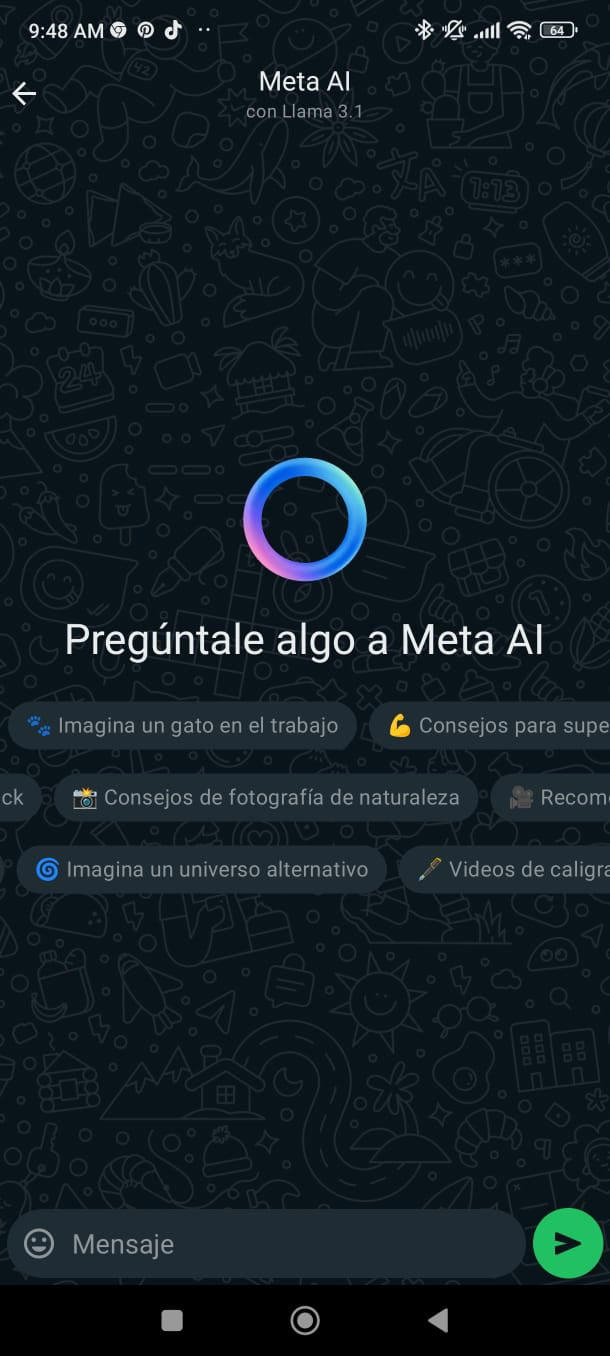 Asegúrate de tener la última versión de WhatsApp instalada, ya que la función Meta AI se activa automáticamente, no es necesario realizar ninguna configuración adicional.