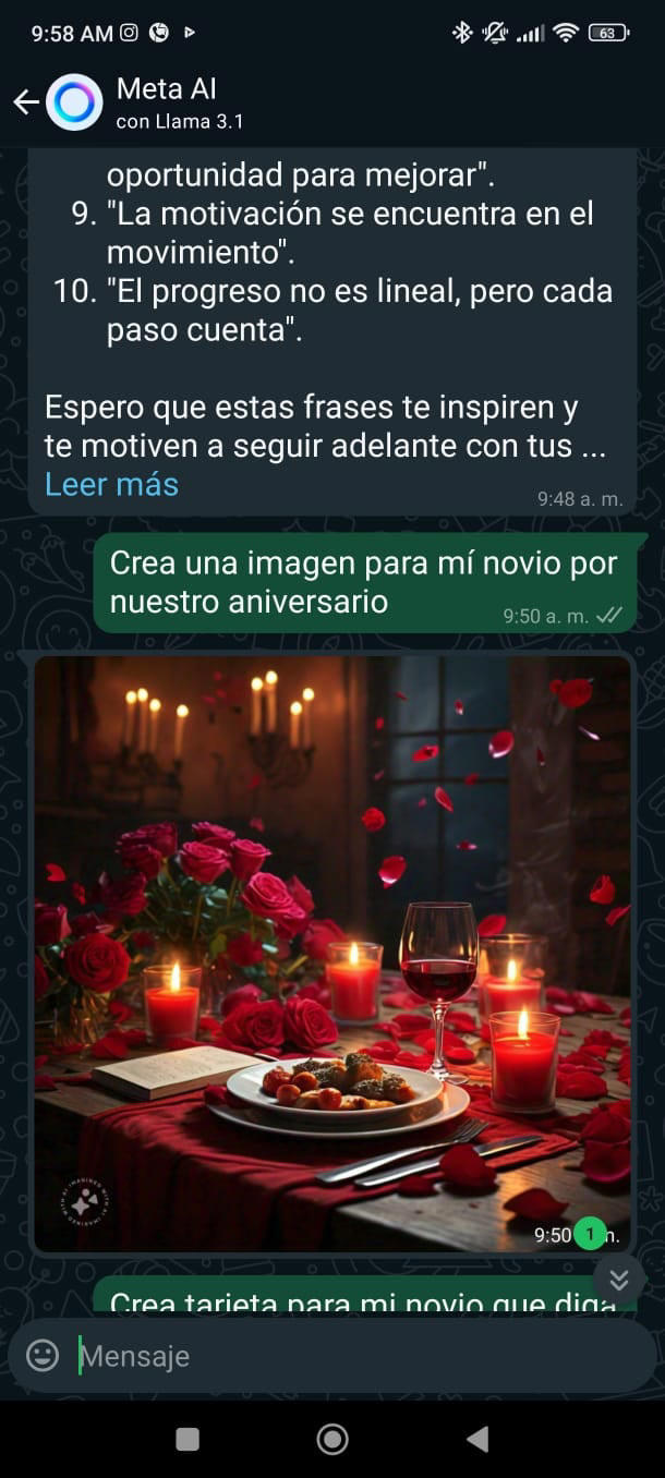 Escribe “@Meta AI” seguido de tu pregunta o solicitud dentro de cualquier chat. La IA se activará en el contexto de la conversación, brindándote respuestas precisas y relevantes.