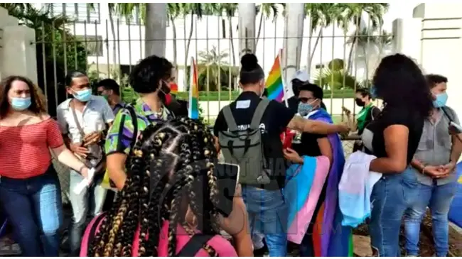 SANTO DOMINGO.- Representantes de diversas organizaciones de la comunidad LGBT se concetraron este viernes frente al Congreso Nacional para protestar por la exclusión del artículo 186 que penaliza la discriminación contra las personas por su orientación sexual en el proyecto del Código Penal aprobado en la Cámara de Diputados.