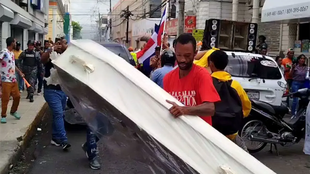 ¡Entierro simbólico! Comunitarios en Moca protestan en contra de los apagones frente a Edenorte