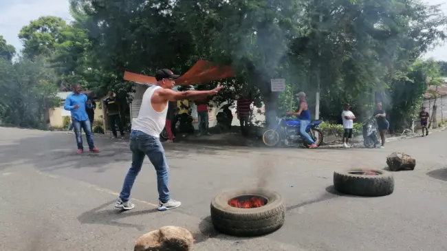 ESPAILLAT.-Residentes del Distrito Municipal de San Víctor, Provincia Espaillat, protestan disgustados por la forma en que personal del Ministerio de Agricultura está sacrificando los cerdos a pequeños productores de esa comunidad.
