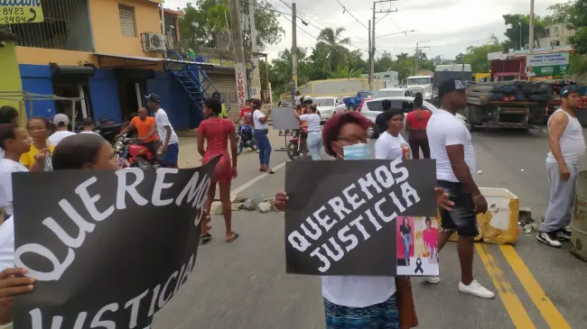 SANTO DOMINGO.- La frase "queremos justicia" predominaba en cada pancarta de varios comunitarios de Haina, quienes con piedras y palos realizaron una protesta exigiendo respuestas de las autoridades tras el hallazgo de una madre y su hija sin vida en los alrededores de la playa Gringo en este municipio.