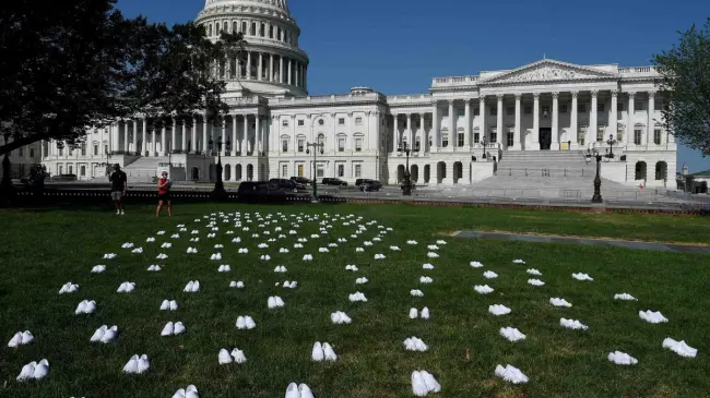 Con 164 pares de zapatos recuerdan enfermeras muertas por COVID-19 en EE.UU.