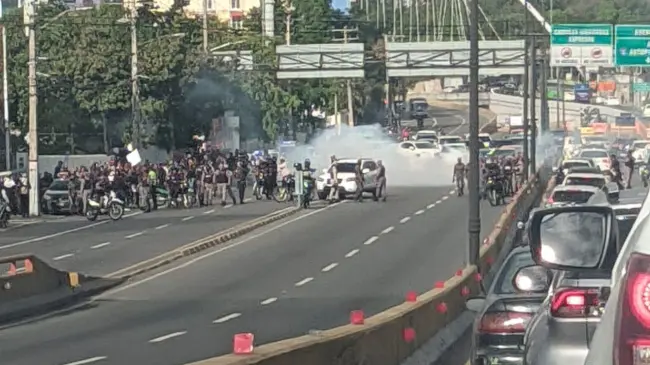 De acuerdo a las informaciones, los manifestantes paralizaron el tránsito de la avenida 27 de Febrero, pero agentes policiales lanzaron bombas lacrimógenas para dispersarlos.