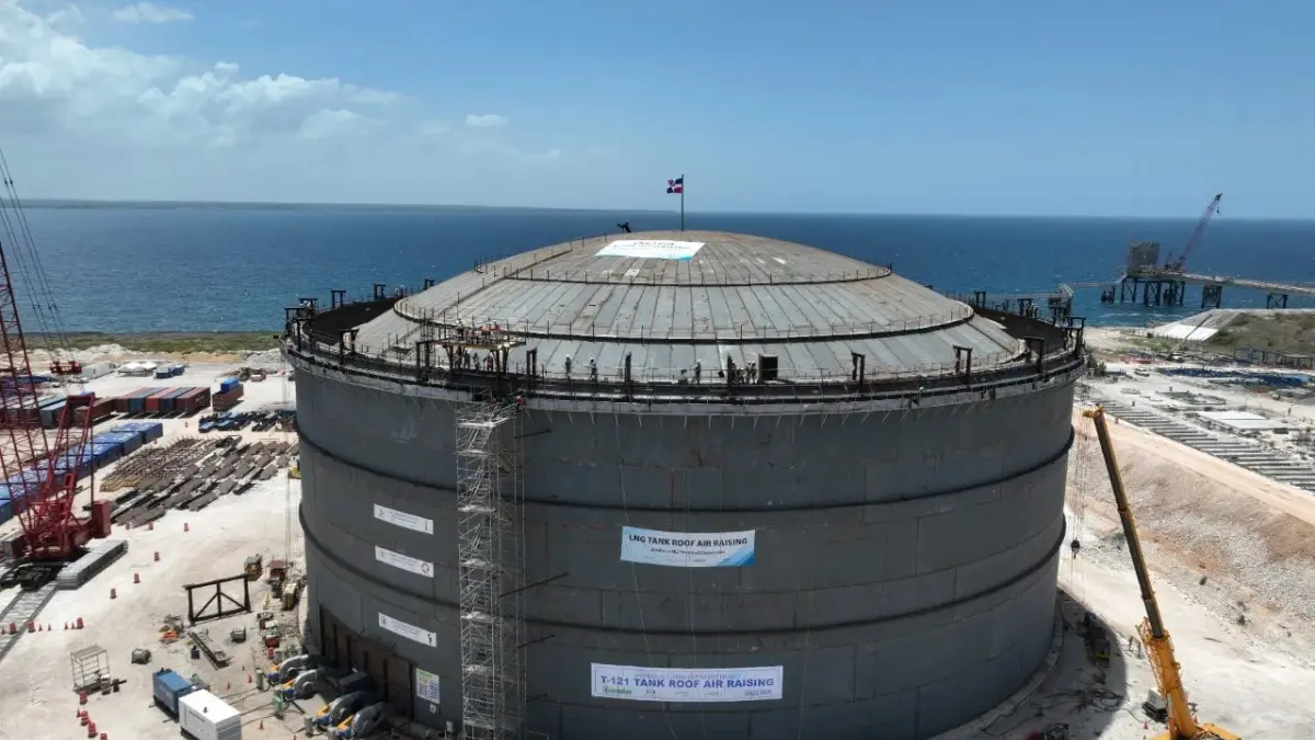 REDACCIÓN.- La empresa Energía Natural Dominicana (ENADOM) realizó el izaje de la cúpula del segundo tanque de almacenamiento de gas natural en la República Dominicana, sellando de esa manera el hito más importante del proceso de construcción, con una inversión de US$250 millones.