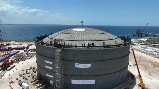 Con inversión de US$250 millones instalan cúpula en nuevo tanque de gas natural que ampliará suministro