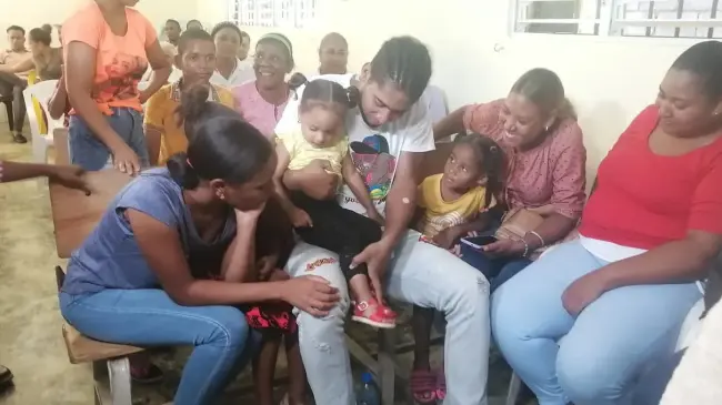 MONSEÑOR NOUEL.- Familiares y amigos del minero dominicano, le prepararon una llegada al joven llena de regocijo y alegría en la comunidad de Maimón donde reside con su abuela de 77 años y su hija de seis