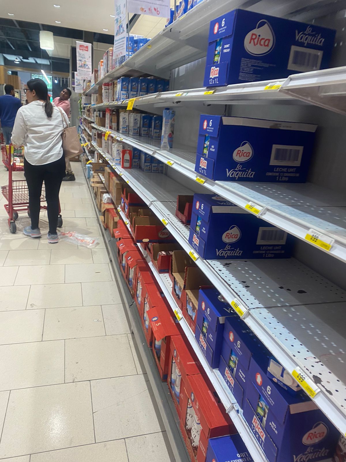 Beryl está cada vez más cerca del territorio dominicano, pero solo se sentirán los efectos indirectos. Al momento de comprar sus provisiones pensaron en los más pequeños de la casa. Porque también las góndolas de los cereales, frutas, maltas y las galletas están desoladas.