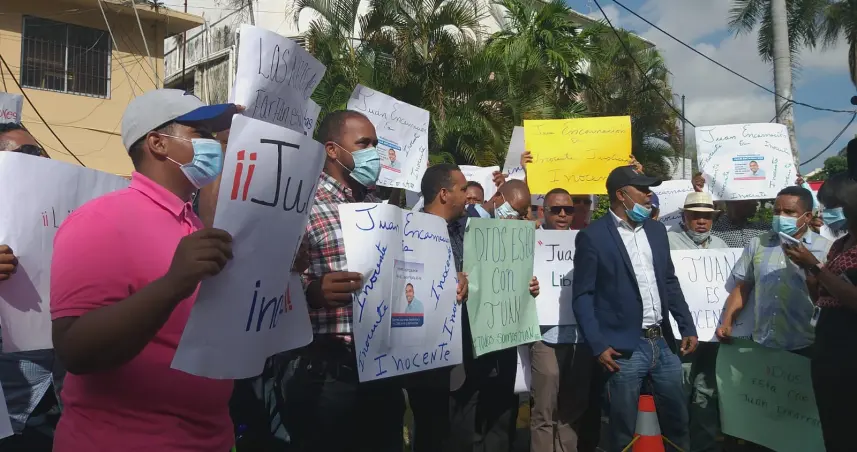SANTO DOMINGO.- Con pancartas y consignas compueblanos del ex pelotero de Grandes Ligas, Juan Encarnación, acusado de agredir sexualmente a su hija de 11 años, acudieron esta mañana al Palacio de Justicia para defender el honor del ex beisbolista y pedir su libertad.