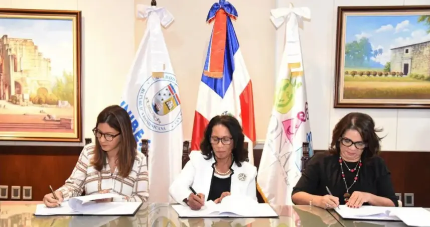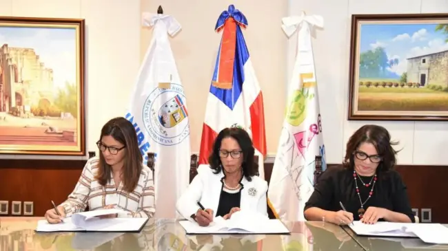 El acto de firma fue encabezado por la presidenta ejecutiva del CONANI, Luisa Ovando de Sánchez y su directora ejecutiva, Alexandra Santelises Joaquín, junto a la rectora de UNIBE, Odile Camilo Vincent.