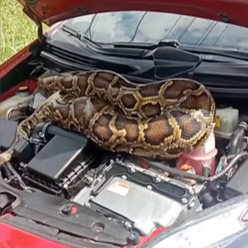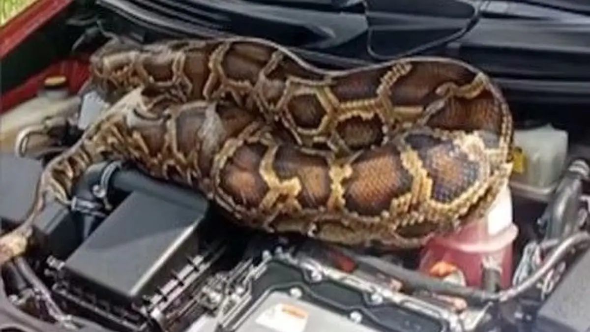 El dueño del auto llamó a la policía para que removiera el reptil de aproximadamente unos 20 pies de largo.