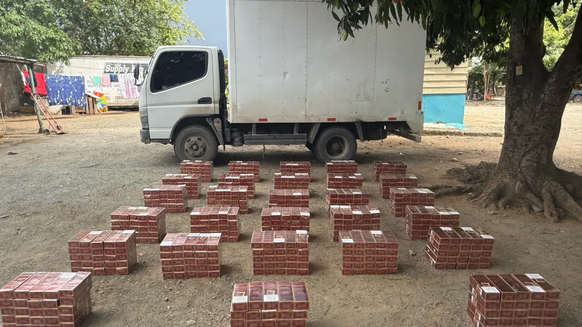 Confiscan contrabando de 154 mil cigarrillos escondidos debajo del falso piso de un camión en Santiago Rodríguez