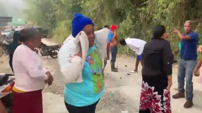Luego, llegaron militares y policías a “levantar el bloqueo ilegal de los comunitarios, quienes supuestamente le entraron a pedradas a las autoridades”.