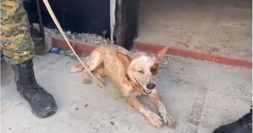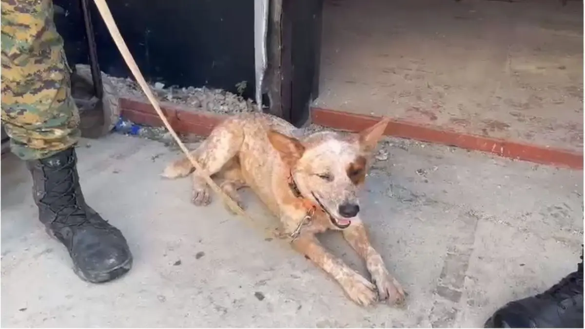 El perro pertenece a la Unidad Humanitaria y de Rescate (UHR), del Ejército de República Dominicana (ERD).