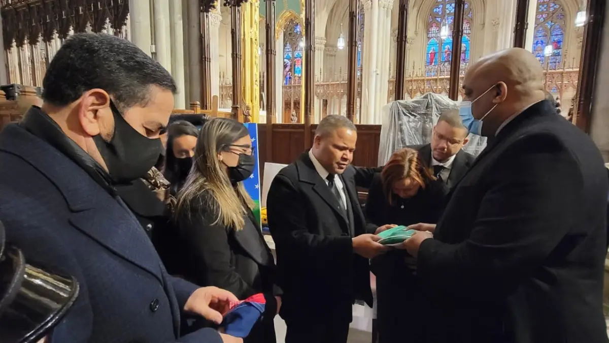 SANTO DOMINGO.- El cónsul Eligió Jaque asistió este jueves al funeral del policía dominicano Jason Rivera efectuado el la Catedral de San Patricio para darle el pésame a los familiares.