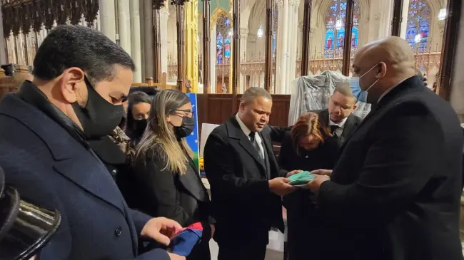 El funcionario consular aprovechó su visita a la Catedral para hacer entrega de la bandera dominicana.