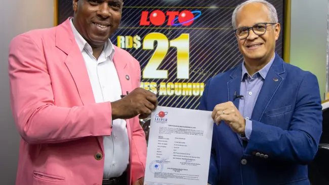 Santo Domingo.– SANTO DOMINGO.- SANTO DOMINGO.- Pablo Víctor Almonte Montero, recibió el certificado que la acredita como ganador de los 21 millones de pesos que tenía el acumulado el sorteo de “Tu única Loto” del pasado sábado 7 de octubre del 2023.