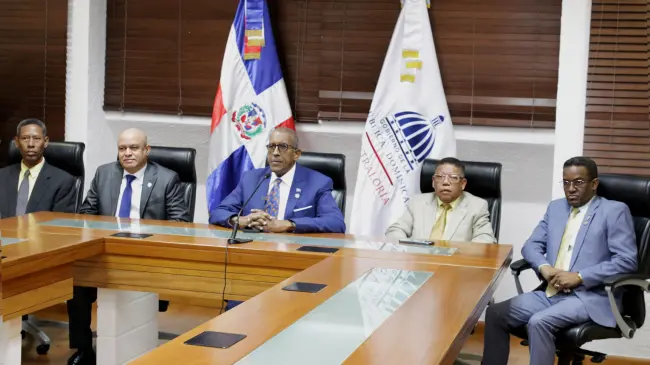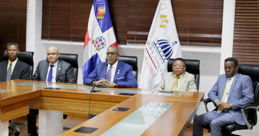 El contralor Santana García en su comparecencia estuvo acompañado de Francisco Tamárez Florentino, responsable de Auditorías; Rolando Saldívar Mota, director de Auditorías Especiales y Cecilio Disla, director de Auditoría Interna.