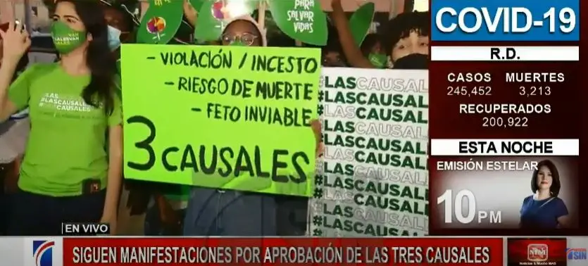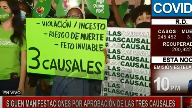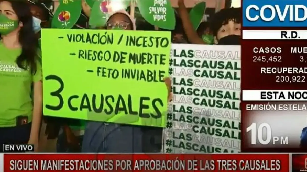 Desde el jueves representantes de diferentes entidades que defienden los derechos de la mujer se mantiene concentrada frente al Palacio Nacional reclamando que el Congreso Nacional acoja su pedimento.