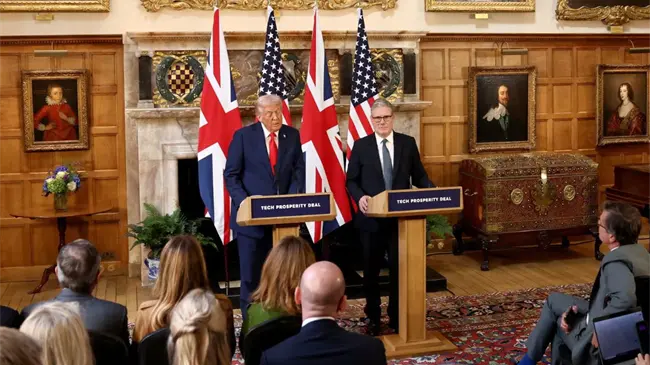 Pacto firmado en septiembre pasado entre presidente norteamericano, Donald Trump, y el primer ministro británico, Keir Starmer. Imagen fuente externa.