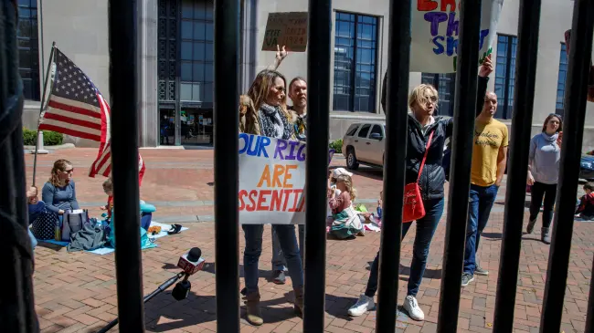 Así como el anuncio de Abbott no hizo retroceder a los manifestantes en Texas, otras voces se unieron a la demanda de reapertura en Indianápolis, donde los manifestantes se congregaron a las puertas de la residencial gobernador, el republicano Eric Holcomb, portando carteles en los que se leía "Abran Indianápolis ahora" y defendían como "esenciales" todos los trabajos.