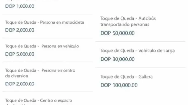 La Procuraduría General de la República (PGR) como órgano rector, informó que las multas van desde los 1,000 pesos a los 100,000 pesos para quienes incumplan el toque de queda. Los transeúntes que violen las medidas deberán pagar 1,000 pesos; los motociclistas 2,000; una persona que se desplace en un vehículo 5,000 y una persona sorprendida en un centro o espacio de diversión 2,000 pesos.