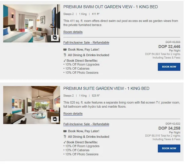 Y, finalmente, la más costosa es la Premium Suite Garden View por 42,822 pesos por noche de alojamiento.