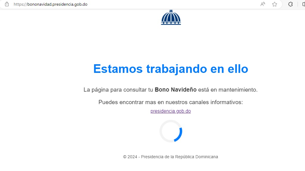 Santo Domingo.– Santo Domingo.- La página web para la verificación de las personas agraciadas con bonos navideños que se ha mantenido fuera de servicio desde el 2 de diciembre tras un colapsó debido al flujo de personas que han consultado, según informó Supérate, ha dado señales de vida este miércoles.