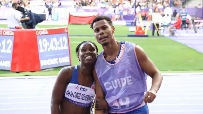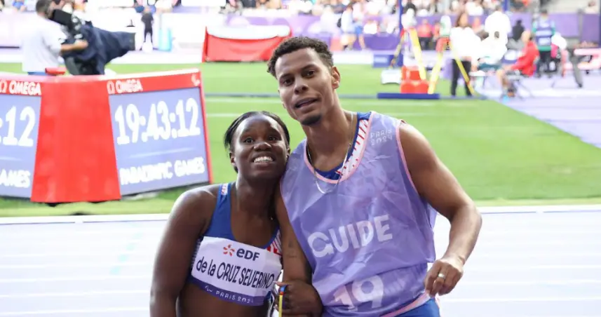 Francia.– Francia.- La campeona mundial del para atletismo, Darlenys de la Cruz y su guía Fary Mejía, clasificaron a la semifinal de los 100 metros, clase deportiva T12, en su primer evento de los Juegos Paralímpicos de París 2024.
