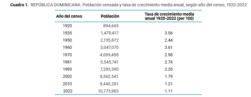 En ese sentido, los resultados del informe establecen en el país se ha experimentado una disminución en el crecimiento poblacional durante las últimas cuatro décadas del siglo XX y las dos primeras del siglo XXI.