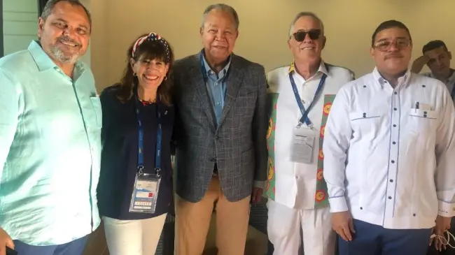 También le acompañaron el presidente del Comité Olímpico Dominicano Antonio Acosta y el presidente de la Federación Dominicana de Béisbol (Fedobe), Juan Núñez.