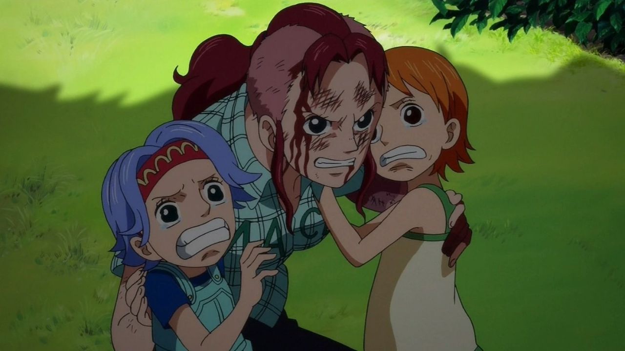 Como última muestra de amor por sus hijas, Bell-mère, se sacrificó para salvar a las pequeñas de las garras del malvado Arlong.