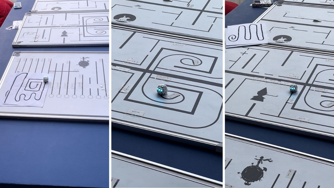 Una de la primeras cosas que se percibe al ingresar en este espacio es una demostración de programación para niños, ejecutada por estudiantes de la Pontificia Universidad Católica Madre y Maestra (PUCMM), que consta de pequeños robots, cuya anatomía es similar a la de R2D2 en “Star Wars”, los cuales están programados para recibir órdenes y recorren una serie de laberintos de color donde de acuerdo al patrón trazado y su tonalidad ejecutarán distintas acciones.