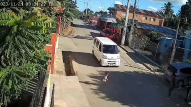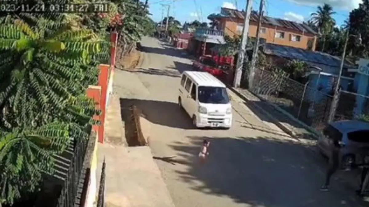 LA VEGA.- Un niño casi pierde la vida al cruzar la calle y una guagua estar a punto de arrollarlo, en un hecho ocurrido en la comunidad Los Valerios, provincia de La Vega.