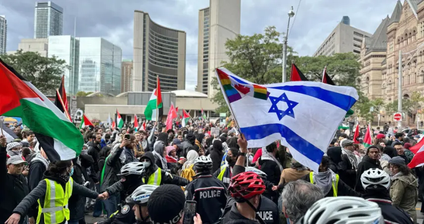 Durante la protesta hubo gritos de "solidaridad con Palestina" y también consignas en contra de Israel y de Estados Unidos, principal aliado del Estado liderado por Benjamín Netanyahu.